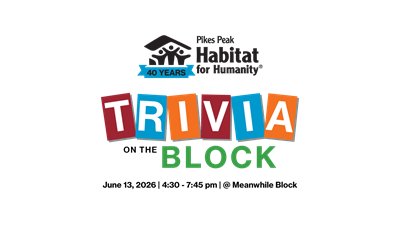Join Pikes Peak Habitat for Humanity as we celebrate 40 years of building homes, communities, and hope in El Paso County at our Trivia on the Block event! Enjoy a lively evening filled with delicious bites from local food trucks and fun, fast-paced trivia. Test your knowledge, gather your team, and take a trip down memory lane as we reflect on four decades of impact and look ahead to the next 40 years of partnering with families in our community. Bring your friends, bring your brainpower, and get ready for an unforgettable night of connection, competition, and celebration!